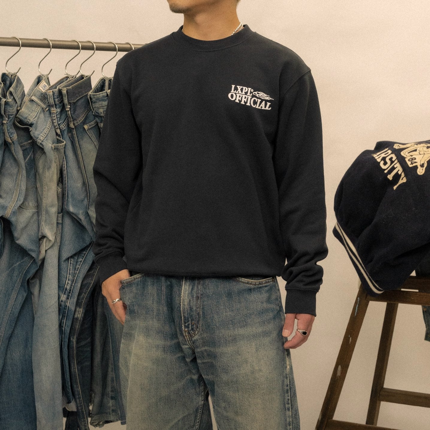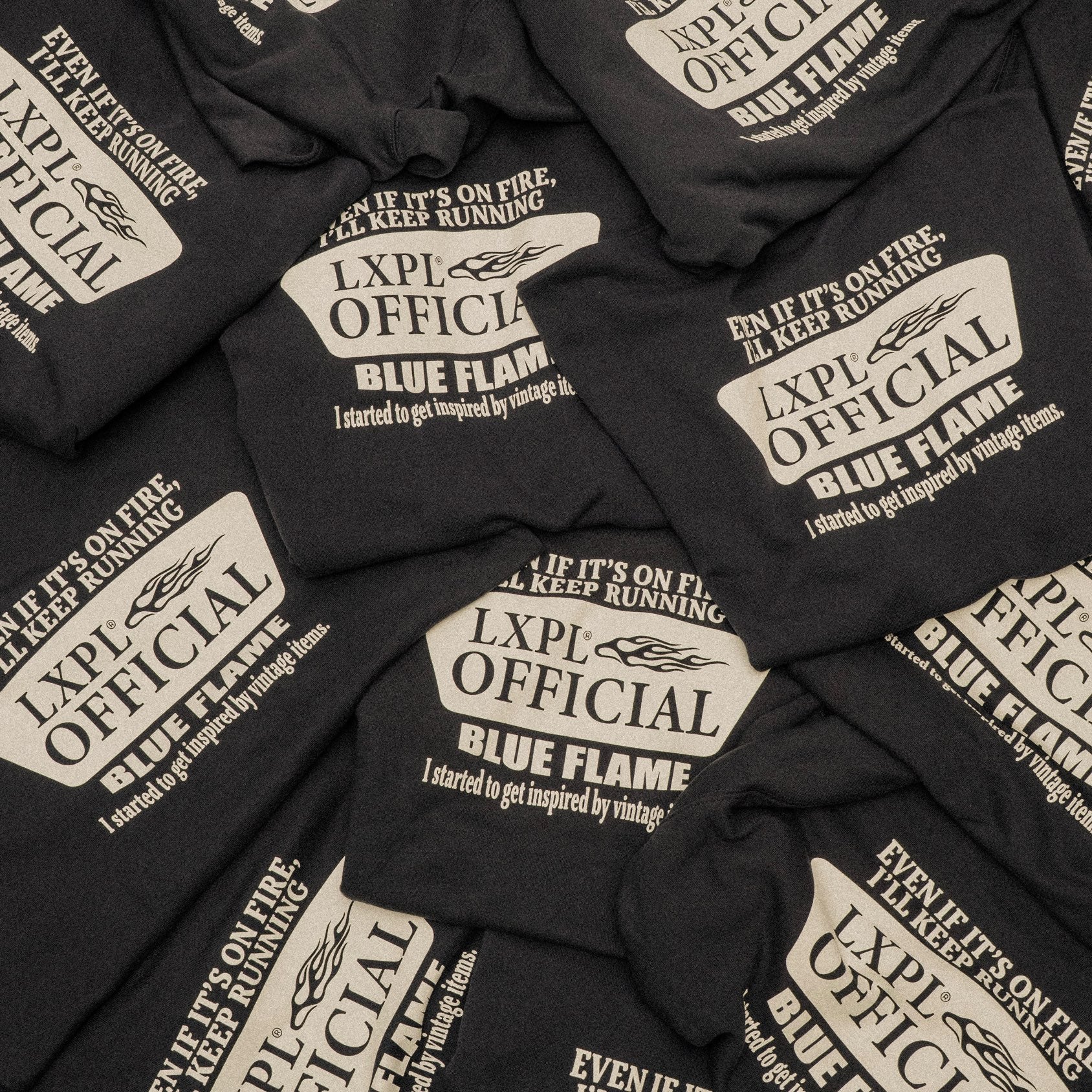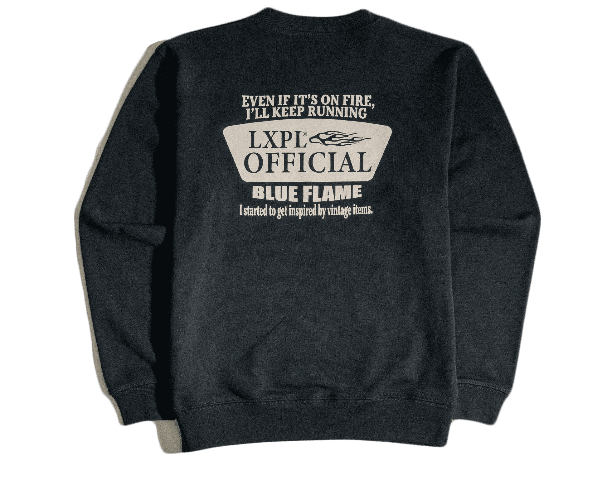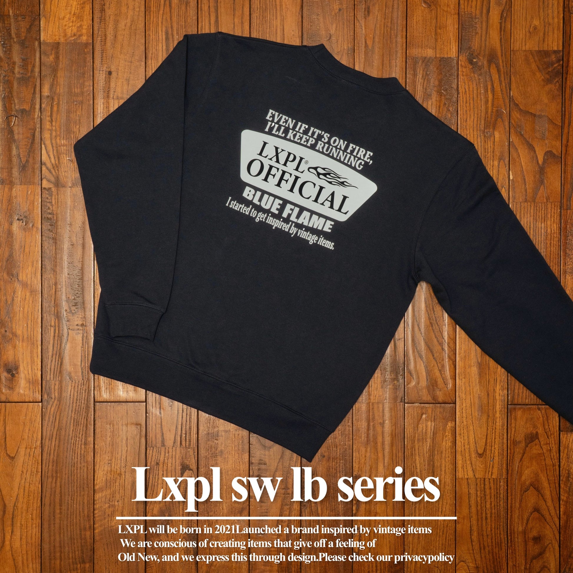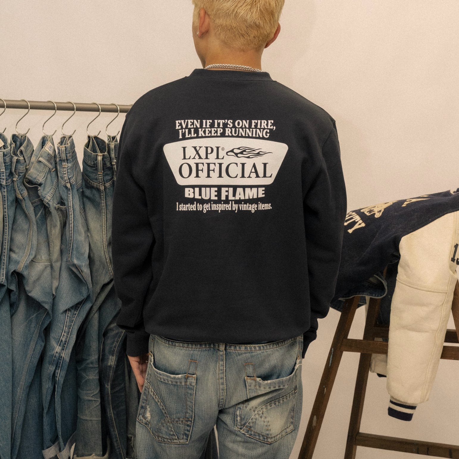 BLUE FLAME グラフィックを落とし込んだ、LXPLのクルーネックスウェット。