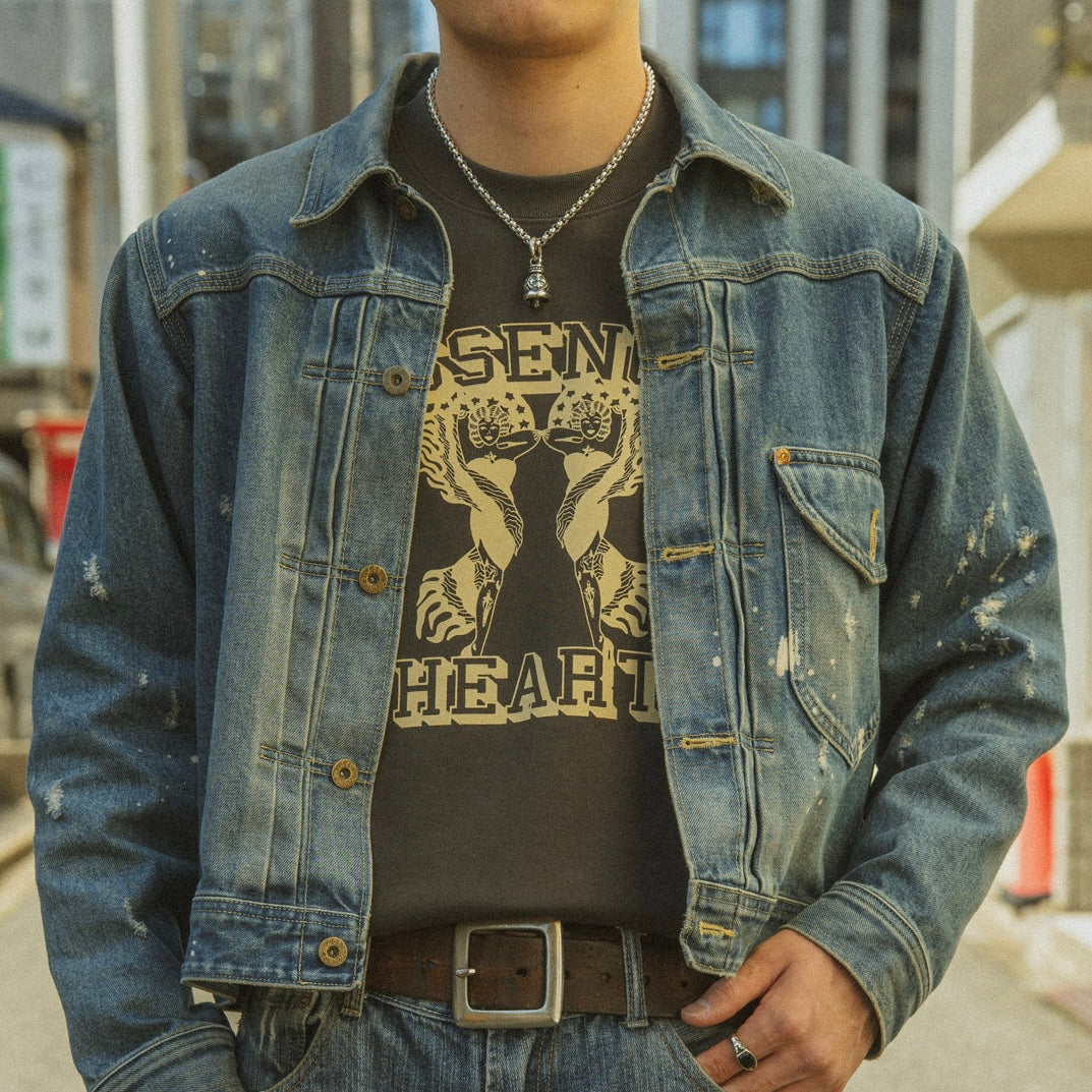 着用するたびにプリントのひび割れ具合が感じられ、経年変化を楽しめるアイテムに仕上がっております。